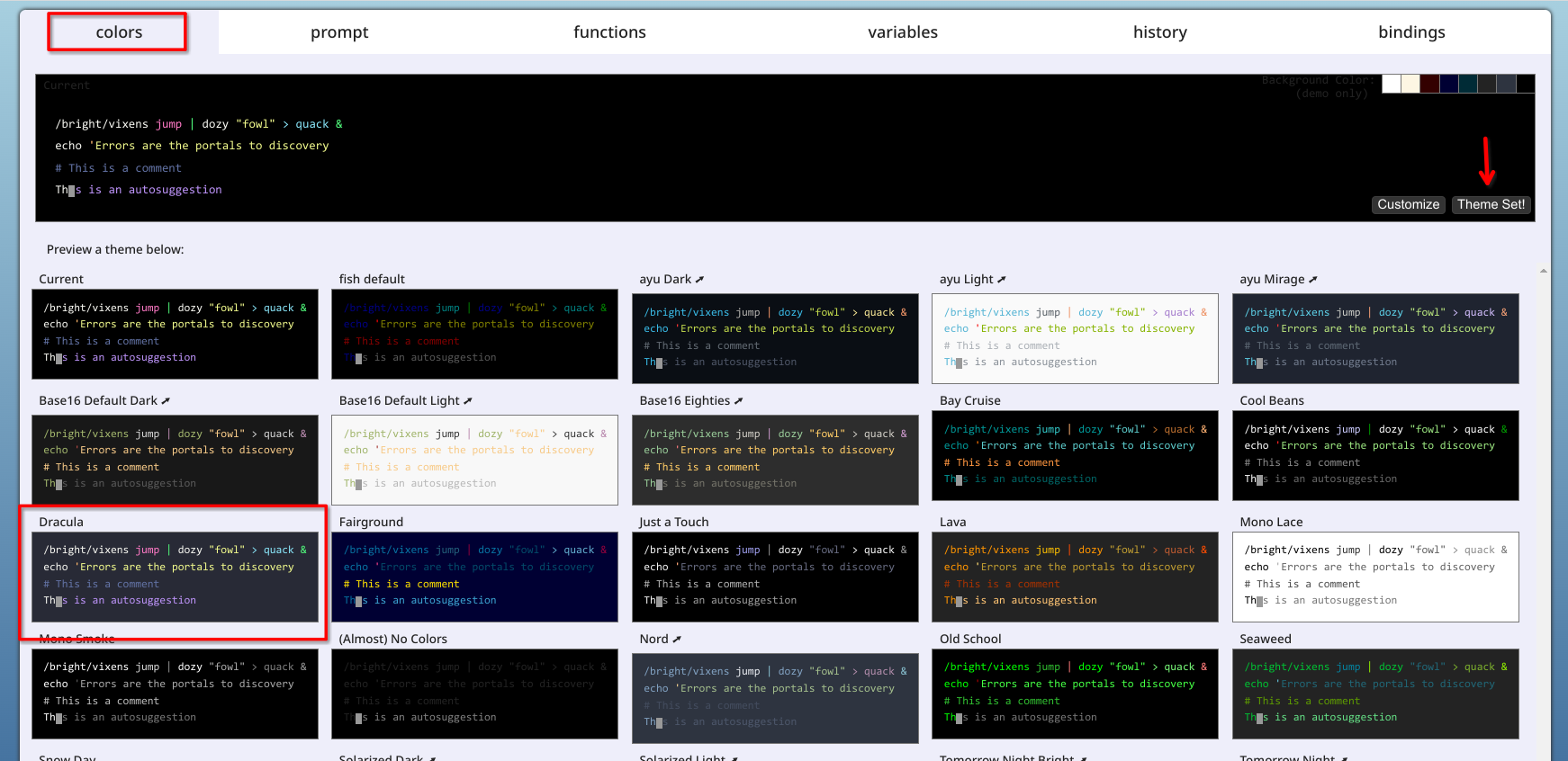 exec fishGo to media browser >> colors pilih Dracula & set theme! >> kembali ke terminal dan tekan enter.