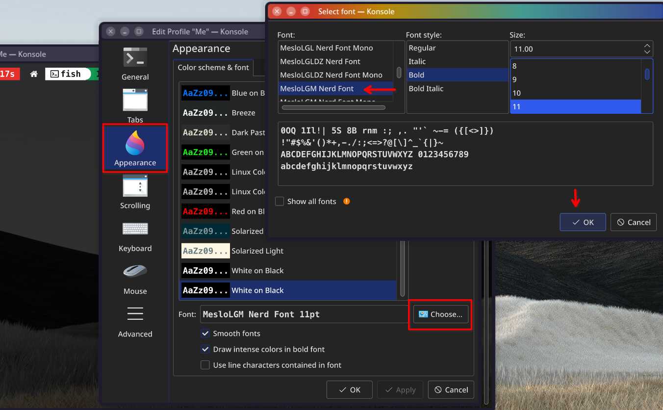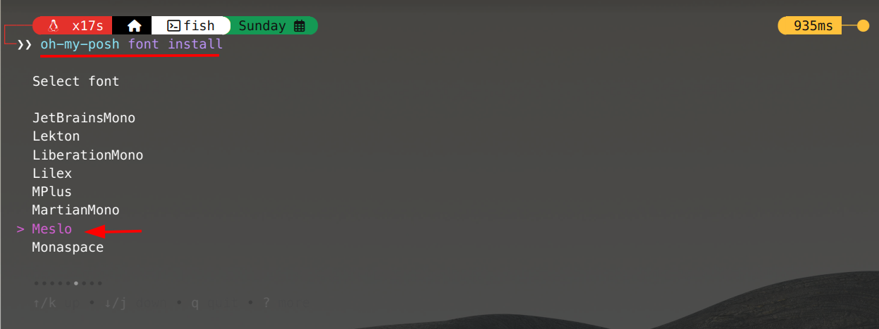 exec fishLangkah 5: Instalasi Font Meslo