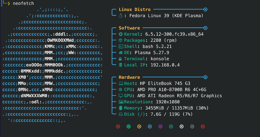 sudo dnf install neofetch (fedora)